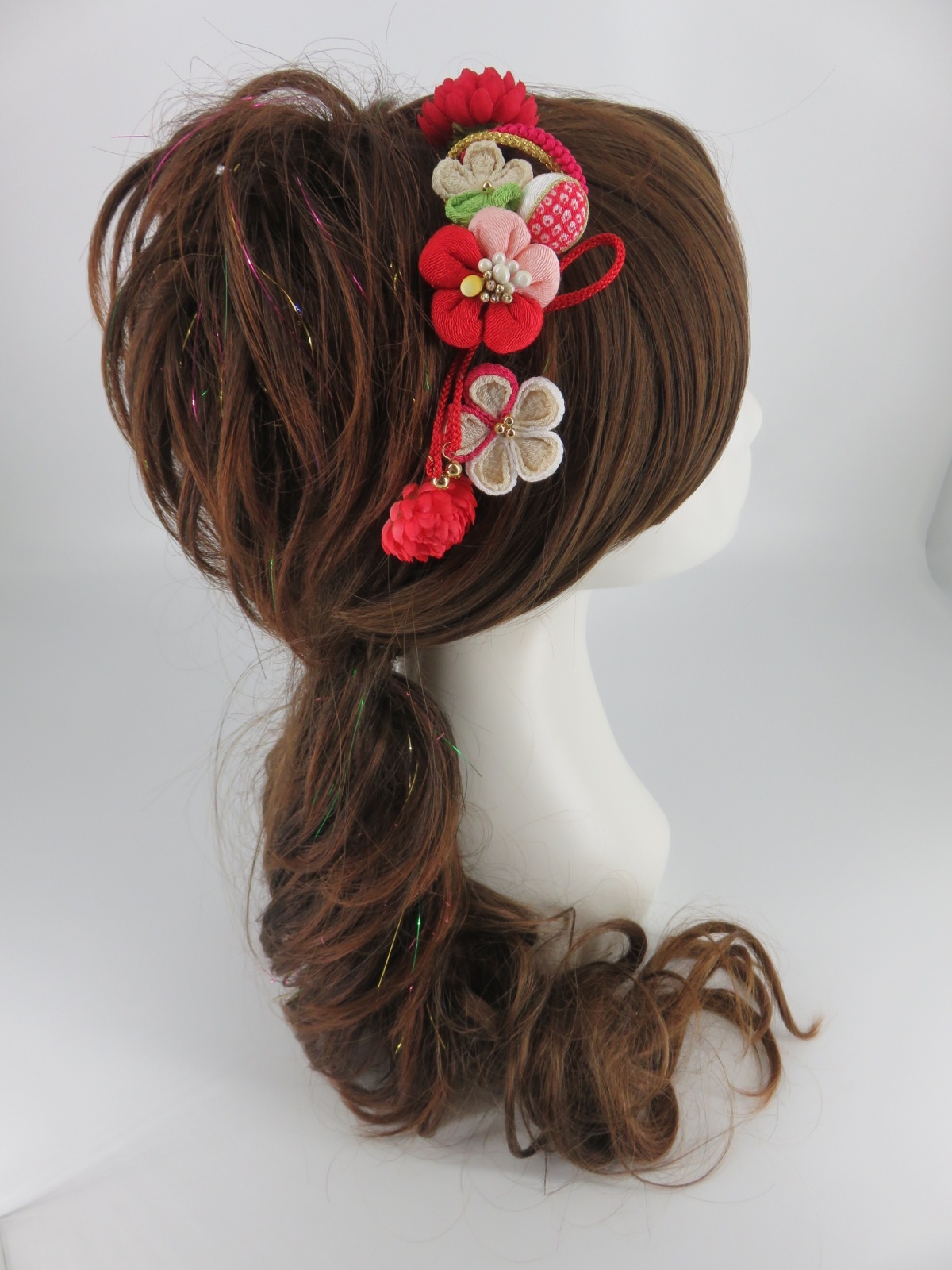 髪飾り 着物 成人式 振袖 袴 卒業式 結婚式 七五三 ちりめん 小 花・.手毬ちりめん.マム花 髪飾り4点セットです。赤. ピンク.グリーン .クリーム素敵な色合いです。 [KH-3B]